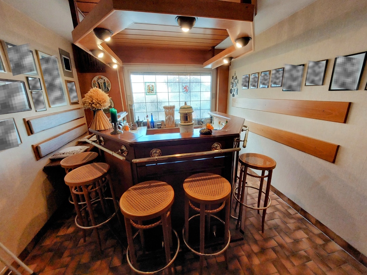 Vom Hausflur aus liegt rechts das Büro/Arbeitszimmer, links das Gäste-WC. Weiter geradeaus befindet sich auf der rechten Seite die gemütliche Bar, dann das Tageslichtbad mit Wanne und Glasdusche sowie ein Zimmer, nutzbar als Schlafzimmer oder Esszimmer. Der sehr üppige Wohn- und Essbereich, links gelegen, mit der angrenzenden Küche gewinnt noch zusätzlich mit dem traumhaften Blick in den wunderschön angelegten Garten.