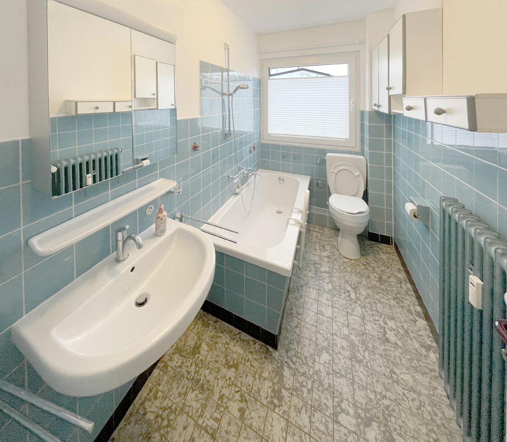Die Wohnung hat einen funktionalen Schnitt und die ca. ca. 96 m² Wohnfläche teilen sich wie folgt auf: 2 Schlafzimmer, die beide nach hinten zum Garten liegen, und somit viel Ruhe und Privatsphäre bieten. Das Retro-Gäste-WC und Wannenbadezimmer, beide mit einem Fenster, und die moderne Küche liegen zur Strassenseite. Das Wohnzimmer mit viel Licht und einer grossen Fensterfront bietet den Zugang zum Süd-West-Balkon und ist für die sonnigen Tage mit einer Markise ausgestattet. Hier können Sie den Blick so richtig geniessen und die Seele baumeln lassen. Ein grosser, geöffneter Durchgang im Wohnzimmer trennt den Essbereich ein wenig ab, der wiederum mit der Küche verbunden ist. Hier besteht die Möglichkeit den Essbereich zu schliessen um ein weiteres Zimmer zu erhalten. Im Flur tritt man sich durch seine optimale Breite nicht auf die Füsse und an der Wohnungseingangstür befindet sich ein praktischer Einbauschrank.