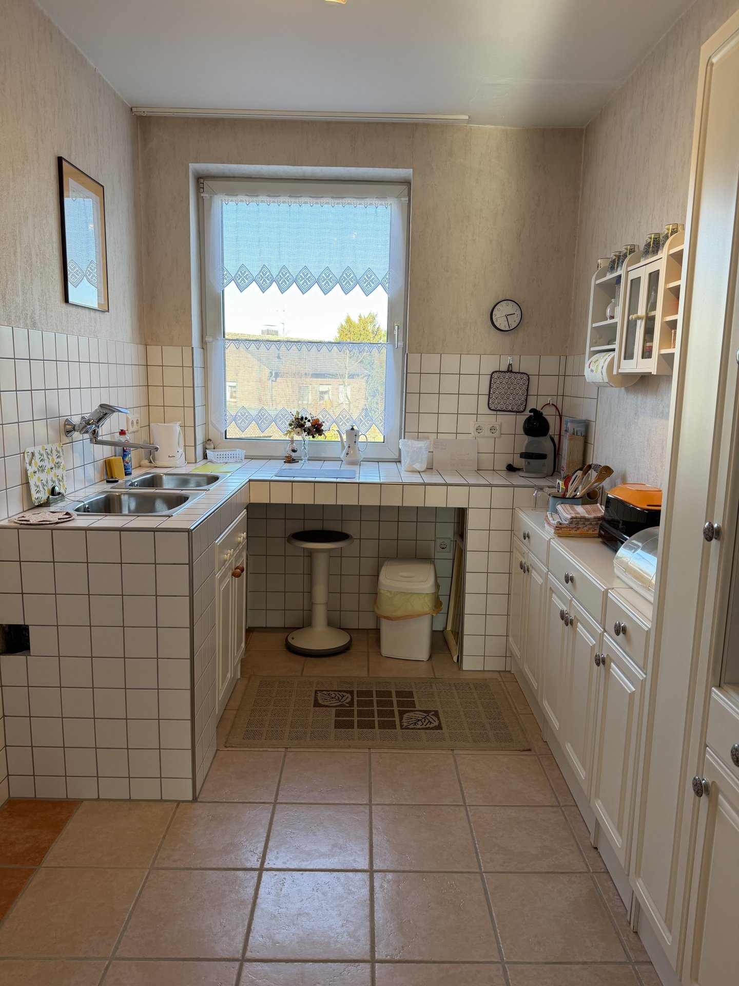 • Die Wohnung verfügt über eine Erdgas-Etagenheizung von Viessmann aus dem Jahr 2005, die als Kombigerät mit einem Warmwasserspeicher ausgestattet ist. In Flur, Küche und Kinderzimmer/Arbeitszimmer sind Fliesen verlegt, während im Schlafzimmer Laminat und im Wohnzimmer Fertigparkett vorhanden sind. Das innenliegende Badezimmer ist mit einer Badewanne ausgestattet. Ein Balkon mit Südausrichtung, der derzeit saniert wird, ergänzt den schönen Grundriss. Die Wohneinheit umfasst insgesamt sechs Parteien und zeichnet sich durch eine sehr gute Nachbarschaft aus. Das Dach wurde in den 1980er Jahren neu gedeckt. Ein großer, separater Kellerraum bietet zusätzlichen Stauraum. Weitere Abstellfläche befindet sich im Dachboden. In der Küche ist ein Anschluss für eine Waschmaschine vorhanden. Die Einbauküche ist ohne Elektrogeräte. Die Elektroinstallation ist älter. Die weißen Kunststofffenster sind isolierverglast, jedoch ohne Rollläden.