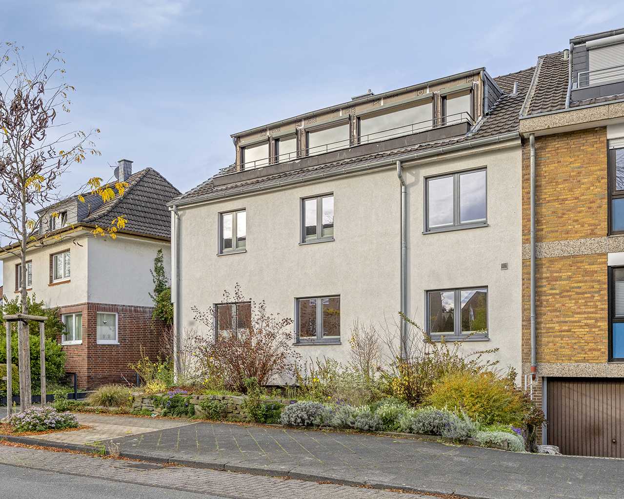 Das Haus steht in einer ruhigen und attraktiven Wohngegend, die sich durch eine angenehme Nachbarschaft auszeichnet. Die Lage bietet eine gute Anbindung an den öffentlichen Personennahverkehr, mit Bushaltestellen und der U-Bahn U72 in der Nähe, die regelmäßige Verbindungen innerhalb von Ratingen sowie zu umliegenden Städten wie Düsseldorf und Essen ermöglichen. Die gute Anbindung an die A3, A44 und A52 sorgen für eine ideale Erreichbarkeit und machen den Standort besonders attraktiv für Pendler.