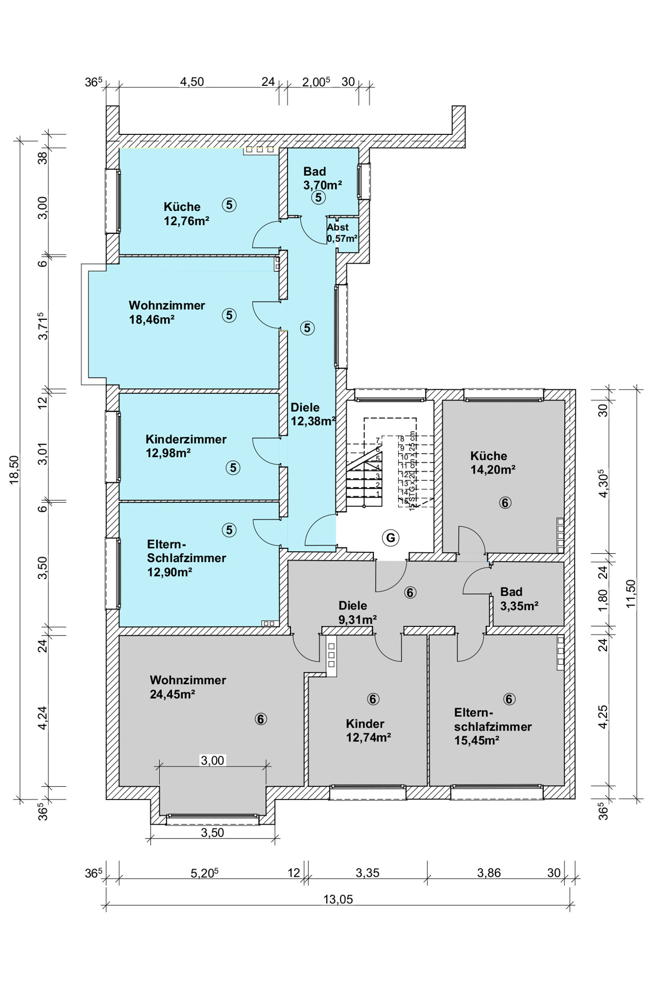 WE 6 – 2. Obergeschoss rechts: 79,50 m², 3 Zimmer