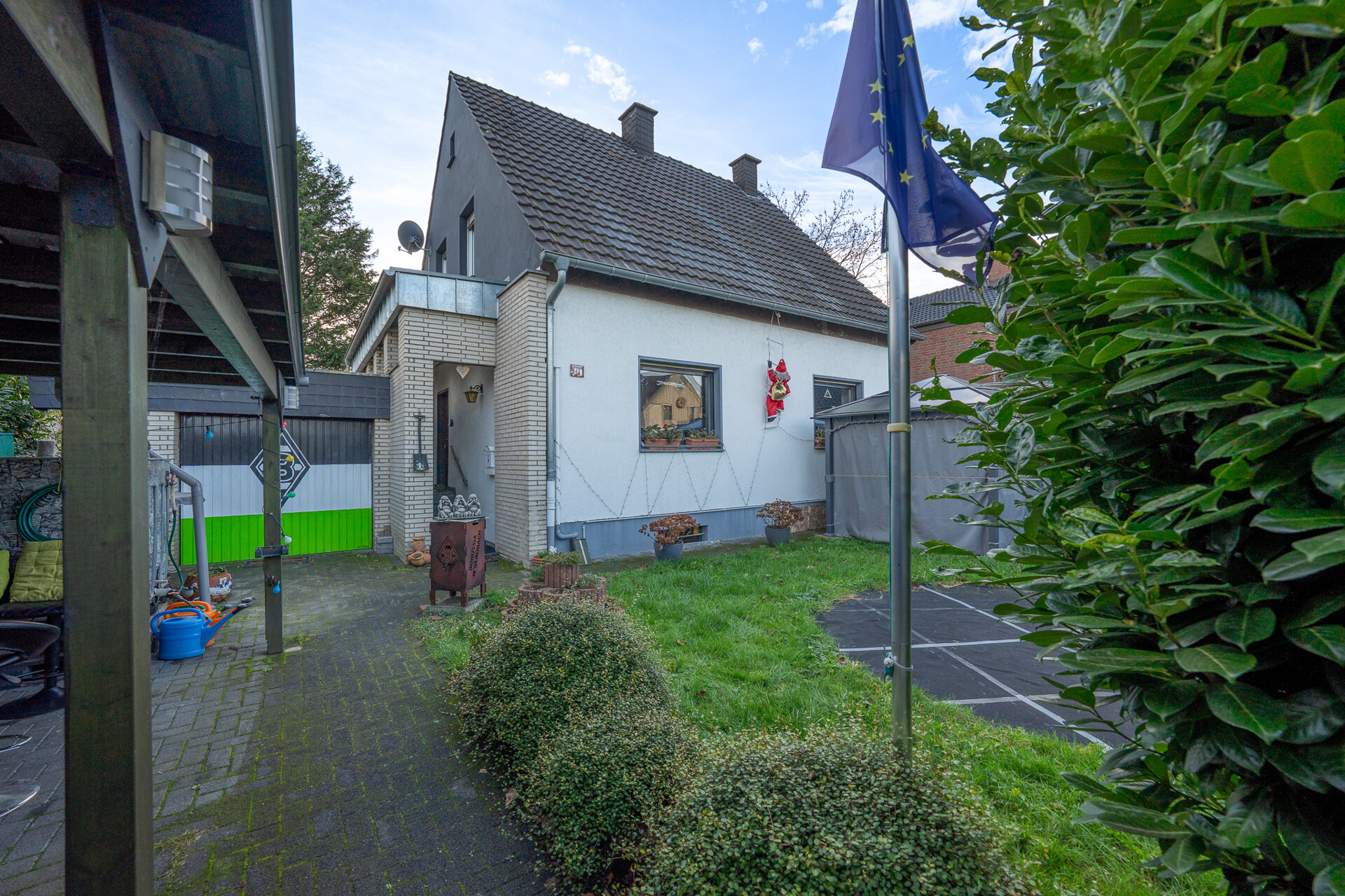 Zwei Carports sorgen für bequemes Parken. Der Garten begeistert mit vorderen und hinteren Gartenbereichen, die Privatsphäre, Spielflächen für Kinder oder entspannte Rückzugsorte im Grünen bieten.