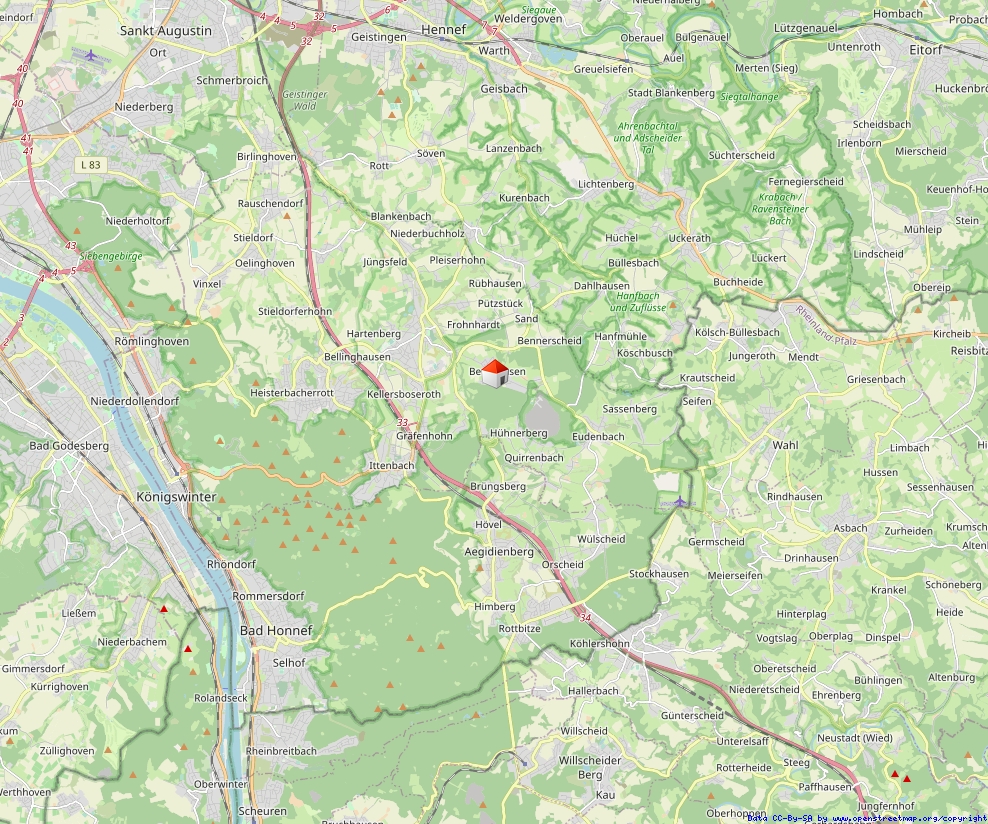 • Die Wohnung befindet sich in 53639 Königswinter im idyllischen Ortsteil Berghausen, in einer besonders ruhigen und naturnahen Höhenlage oberhalb des beliebten Ortsteils Oberpleis. Die Umgebung ist geprägt von Wiesen, sanften Hügeln und einem herrlichen Blick in Richtung des Siebengebirge sowie zum markanten Oelberg.