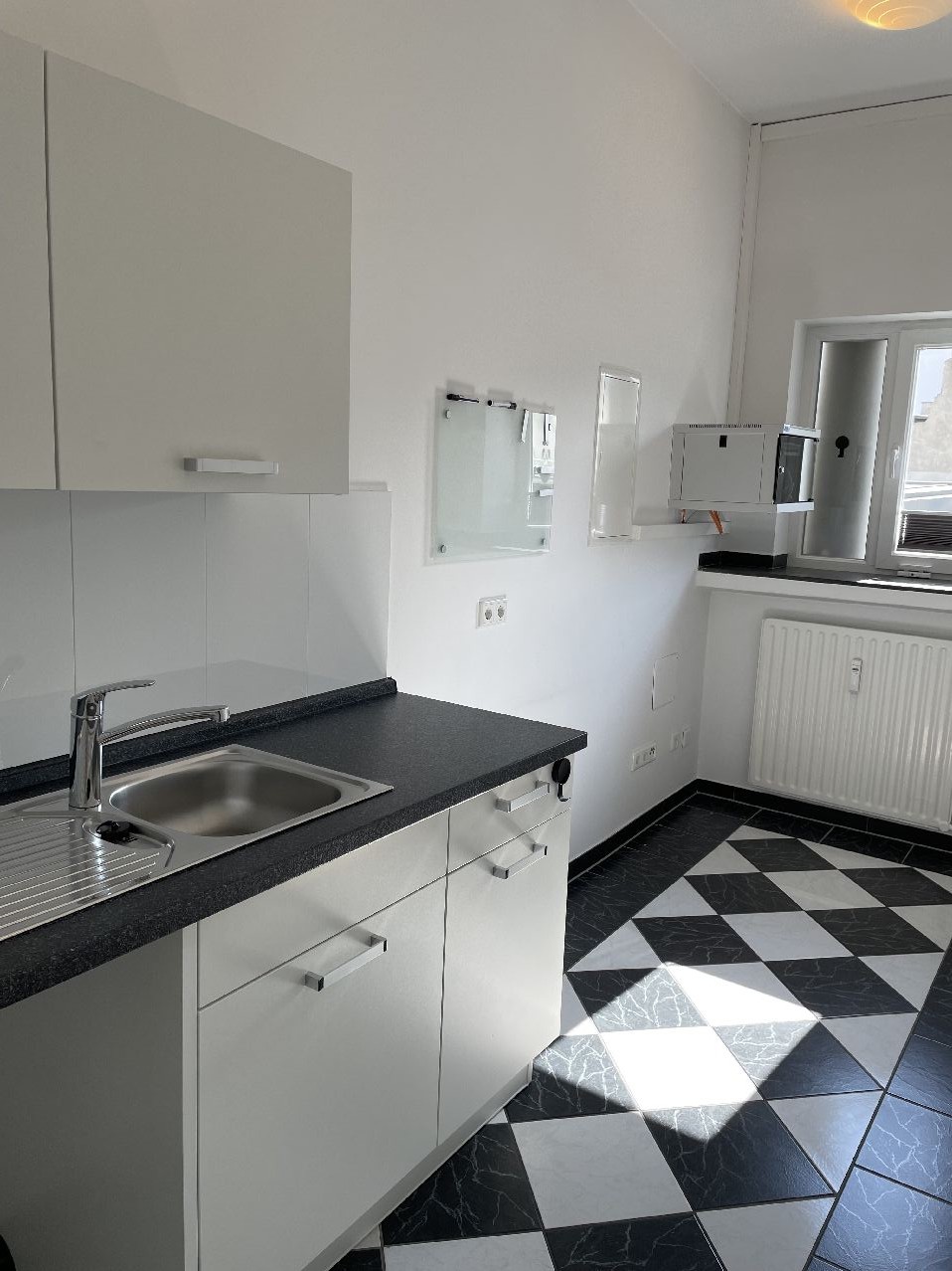 Großflächige Fenster, weiß gestrichene Wände, gepflegter Bodenbelag. Fernwärme sorgt für Nahwärme – und eine Klimaanlage für den kühlen Kopf. Dazu eine Teeküche (ohne Spülmaschine). Eigentlich ist schon alles bereitet!