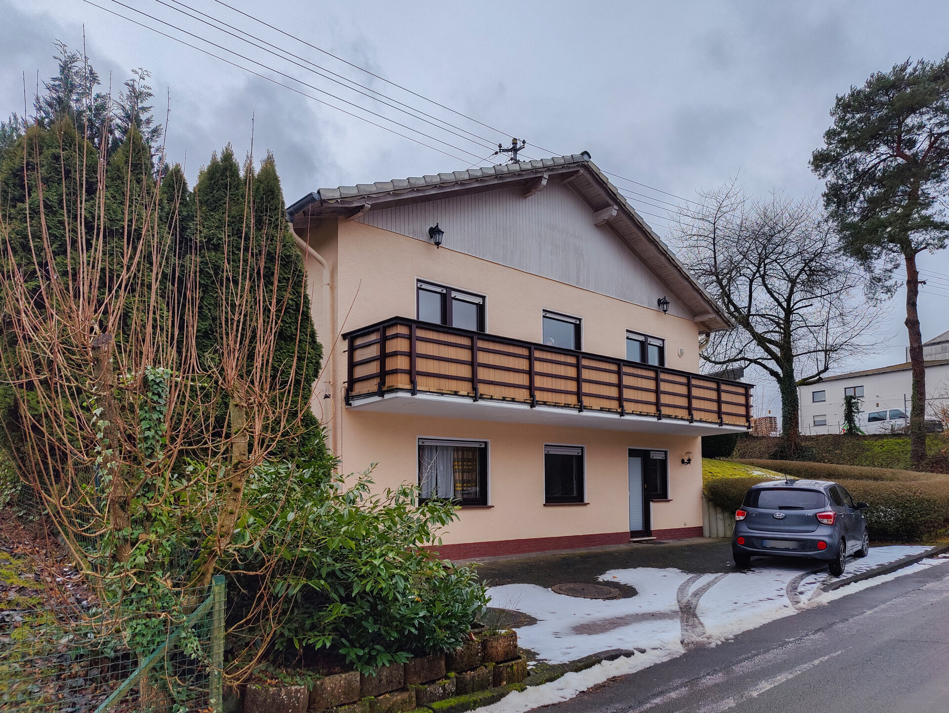 So wäre z.B. eine barrierefreie Wohnung im Souterrain denkbar, die über 2 Zimmer Küche und Bad verfügt. Weitere Kellerräume könnten der Wohnung zugeordnet werden. Alternativ kann der Wohnbereich im UG auch der Wohnung im EG zugeordnet werden, da es eine zentrale Innentreppe gibt.Im Erdgeschoss befindet sich der Hauptwohnbereich mit seinen 3 Zimmern, Küche und Bad. Vom Wohnzimmer aus gelangt man auf eine große überdachte Terrasse, die an der Rückseite des Hauses errichtet wurde. Straßenseitig befindet sich ein großer Balkon mit mehren Zugängen und herrlichem Ausblick in die Umgebung. Auf dem Grundstück wurde noch eine Gartenhütte platziert, die als Abstell- oder Partyhütte dienen könnte. -