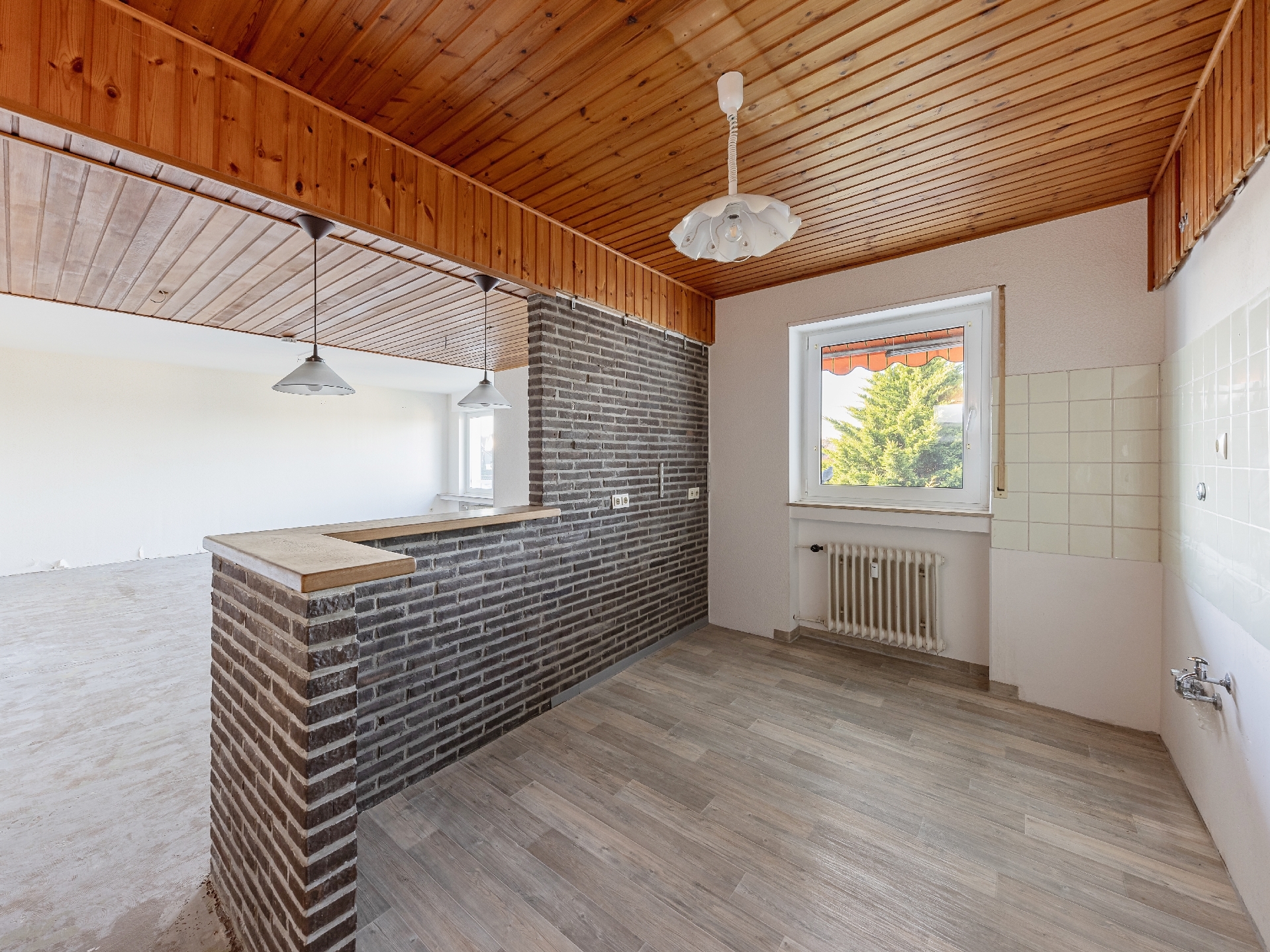 Das Herzstück der Wohnung ist der große Wohn-/Essbereich mit offener Küche. Hier fällt durch die weite Fensterfront besonders viel Licht ein – und Sie genießen denselben traumhaften Ausblick, der auch vom Südbalkon aus zu erleben ist. Ob Sonnenuntergang, Fernsicht oder einfach ein helles, offenes Wohngefühl: Diese Wohnung bringt Atmosphäre und Wohlbefinden zusammen.