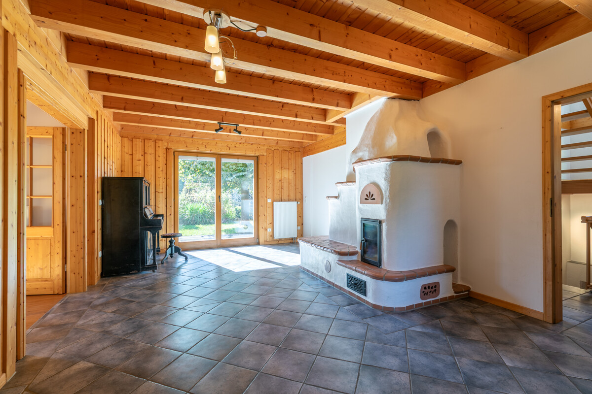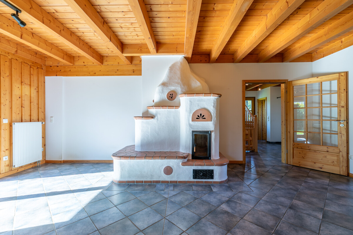 Durch eine verglaste Holztür betreten Sie das Herz des Hauses: Hier kann die ganze Familie auf einer Fläche von fast 60 m² nach Lust und Laune kochen, speisen und gemütlich beisammen sein. Die hochwertige Einbauküche ist bereits im KP enthalten, und ein großer Vorratsraum sorgt für extra Staufläche. Besonderes Highlight im Essbereich ist der individuelle Kaminofen. Da freut man sich direkt auf die kalte Jahreszeit und das Kuscheln auf der Kaminbank. Bei so viel Gemütlichkeit und den großzügigen Räumlichkeiten kann das nächste Fest schon geplant werden. Auf der schönen Süd-West-Terrasse verbringt man herrliche Sonnenstunden, und im tollen Garten ist jede Menge Platz für Gemüsebeete, Feuerstelle und Spielgeräte. Ein Paradies für Groß und Klein!