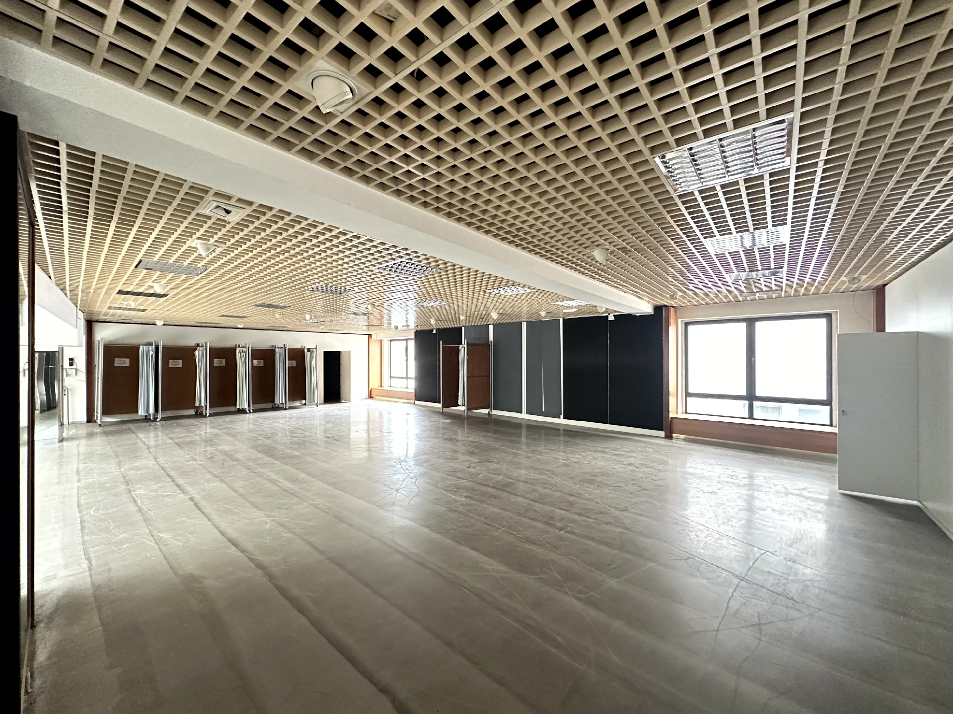 Die Deckenbeleuchtung ist professionell integriert und unterstreicht die vielseitigen Nutzungsmöglichkeiten der Fläche. Ergänzt wird das Angebot durch praktische Extras wie Lagerflächen im Keller und einen Aufzug. Für wachsende Unternehmen besteht die Möglichkeit, die Fläche mit weiteren Einheiten zu kombinieren, sodass eine Gesamtmietfläche von bis zu 2.706 m² zur Verfügung steht.