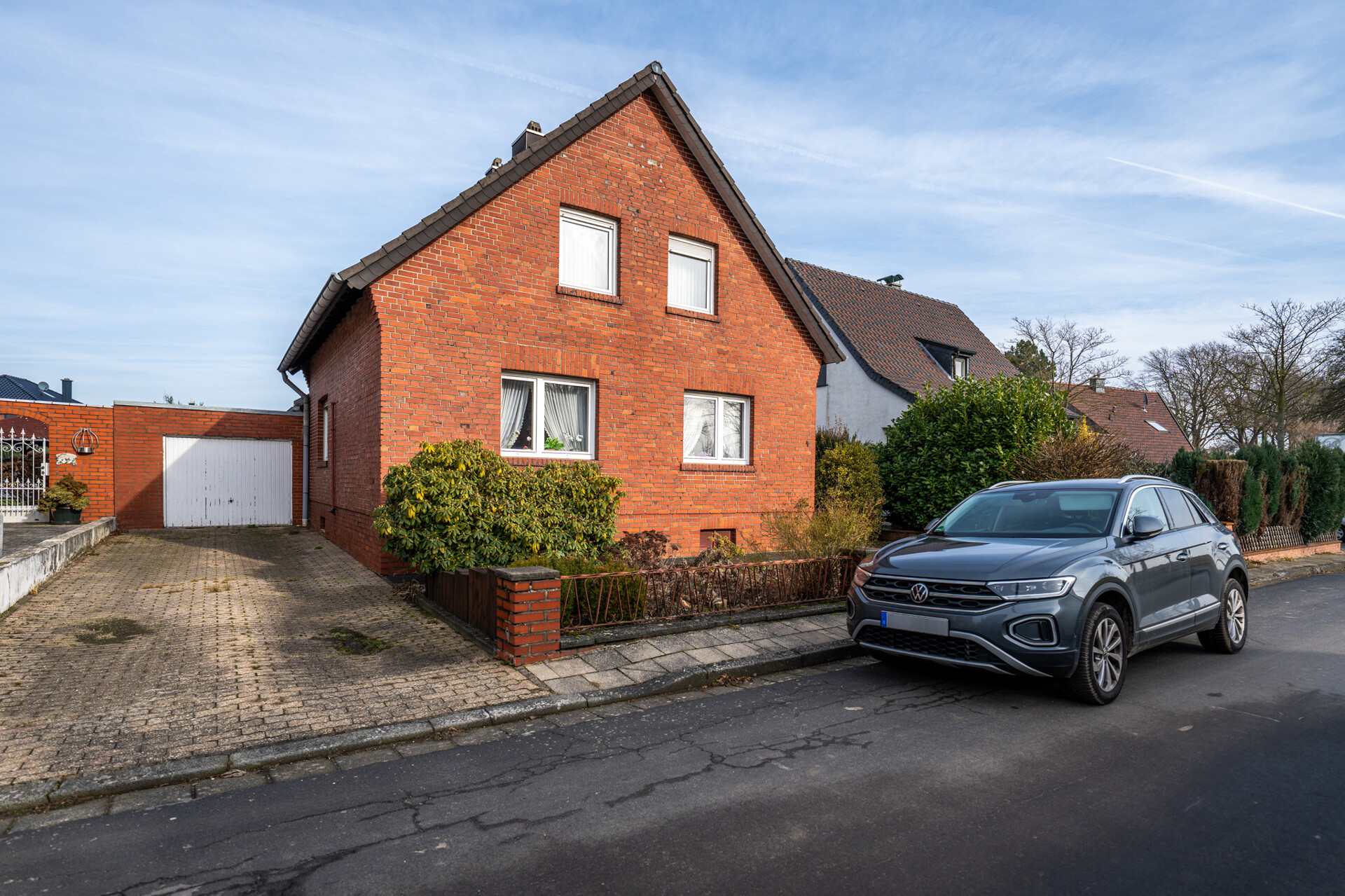 • Dieses freistehende Einfamilienhaus aus den 1960er Jahren überzeugt mit gepflegter Substanz auf einem ca. 425 m² großen Grundstück. Die Wohnfläche von ca. 102 m² verteilt sich auf 5 Zimmer, darunter zwei Schlafzimmer im Obergeschoss, eines mit angrenzendem Durchgangszimmer. Tageslichtbad mit Wanne, separates Gäste-WC, Terrasse, Kellergeschoss und Garage runden das Angebot ab.