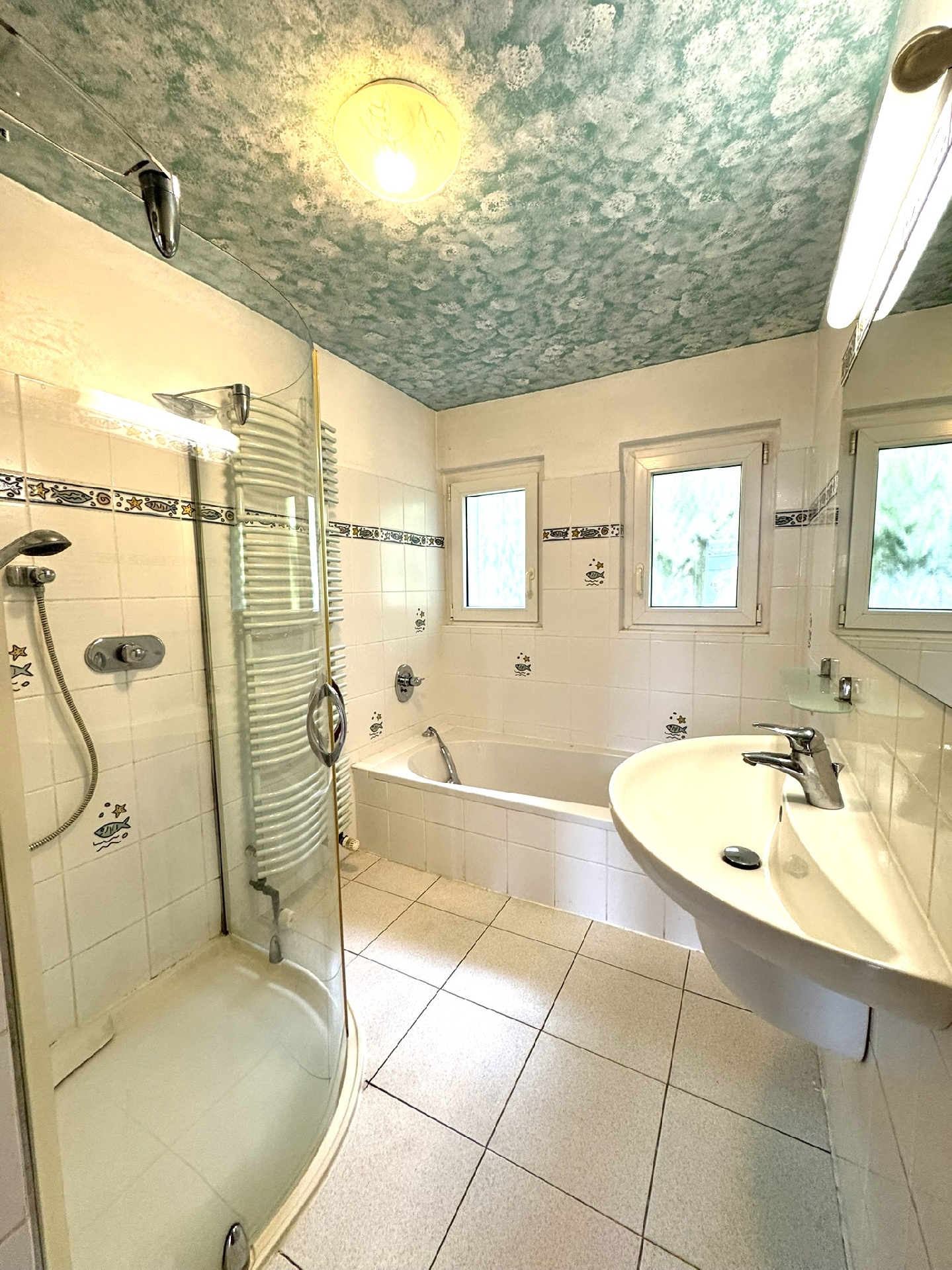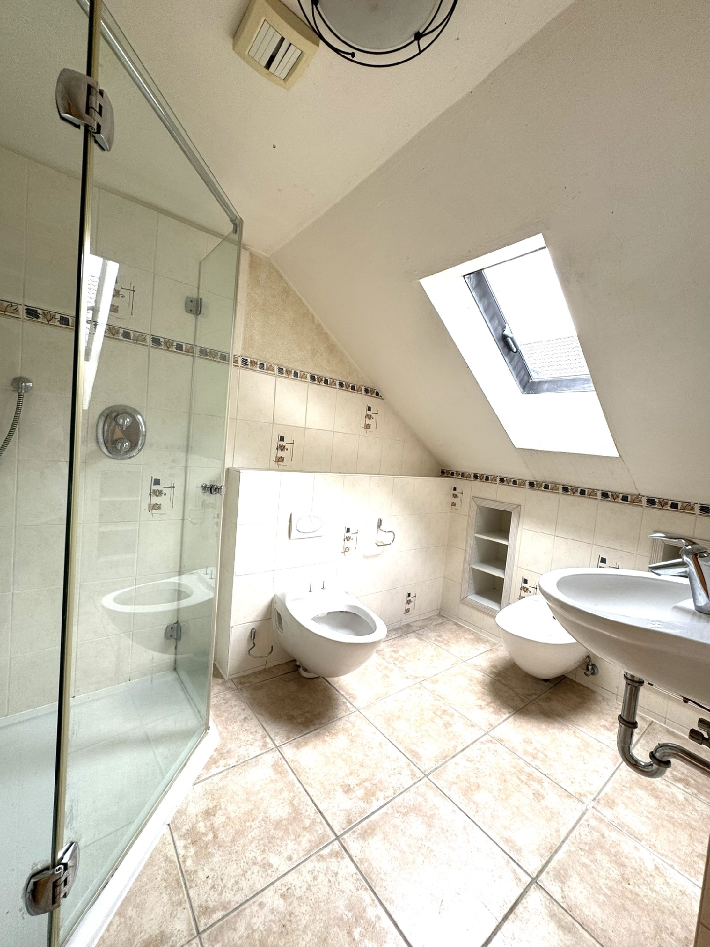 – hell gefliestes Tageslichtbad im Dachgeschoss, ausgestattet mit Dusche, Waschtisch und WC- Heizungsart: Zentralheizung