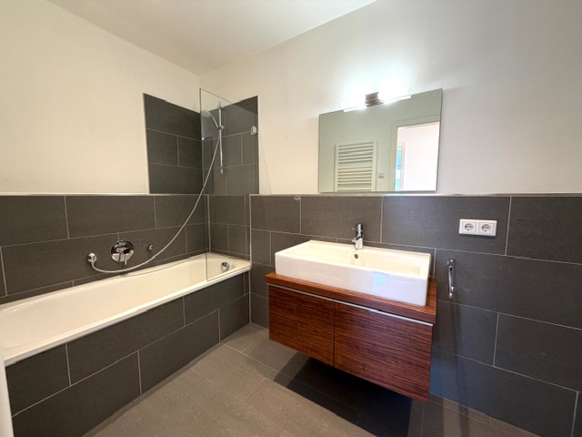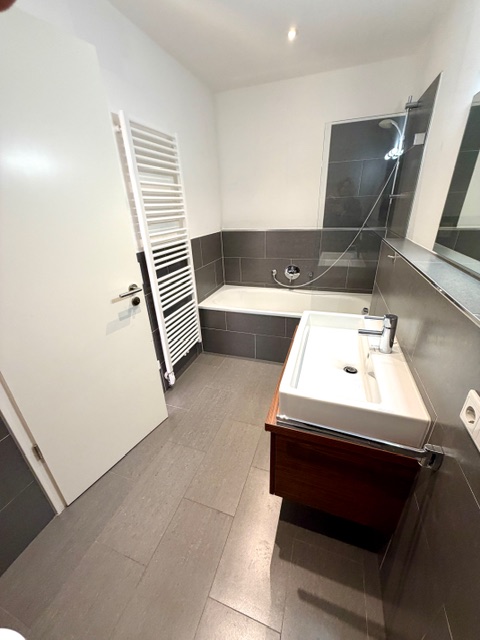 Das Schlafzimmer bietet ausreichend Platz für ein großes Bett und einen Kleiderschrank. Das geschmackvoll ausgestattete Wannenbad ist zeitlos gefliest und bietet neben einem Handtuchheizkörper einen Anschluss für die Waschmaschine im Bad. Alternativ kann die Waschmaschine im gemeinschaftlichen Waschkellers abgestellt werden.