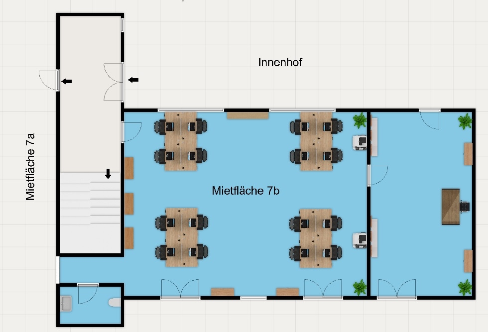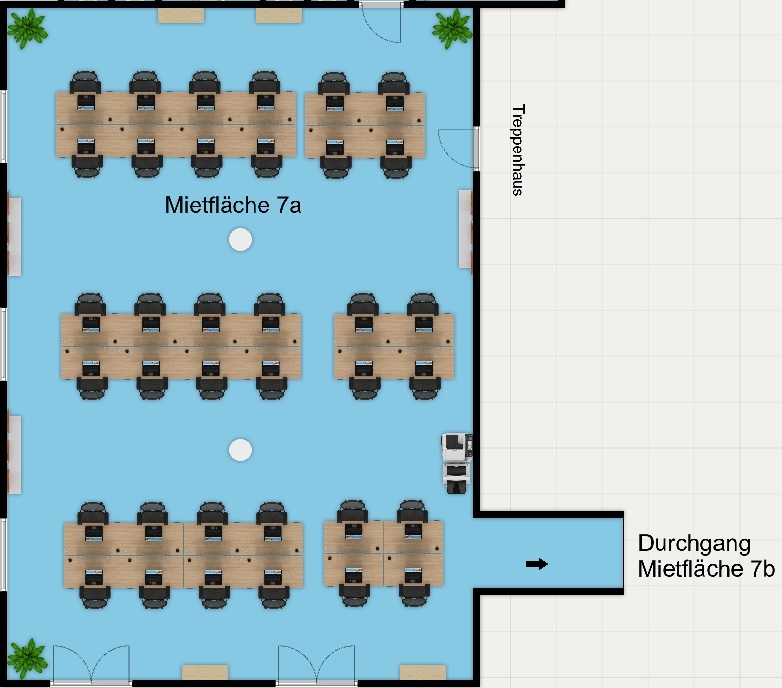 Ein weiterer Vorteil dieser Einheit ist die Möglichkeit, zusätzliche Flächen im Gebäude zu mieten. Dadurch könnte die gesamte Fläche auf bis zu ca. 2.756 m² erweitert werden.