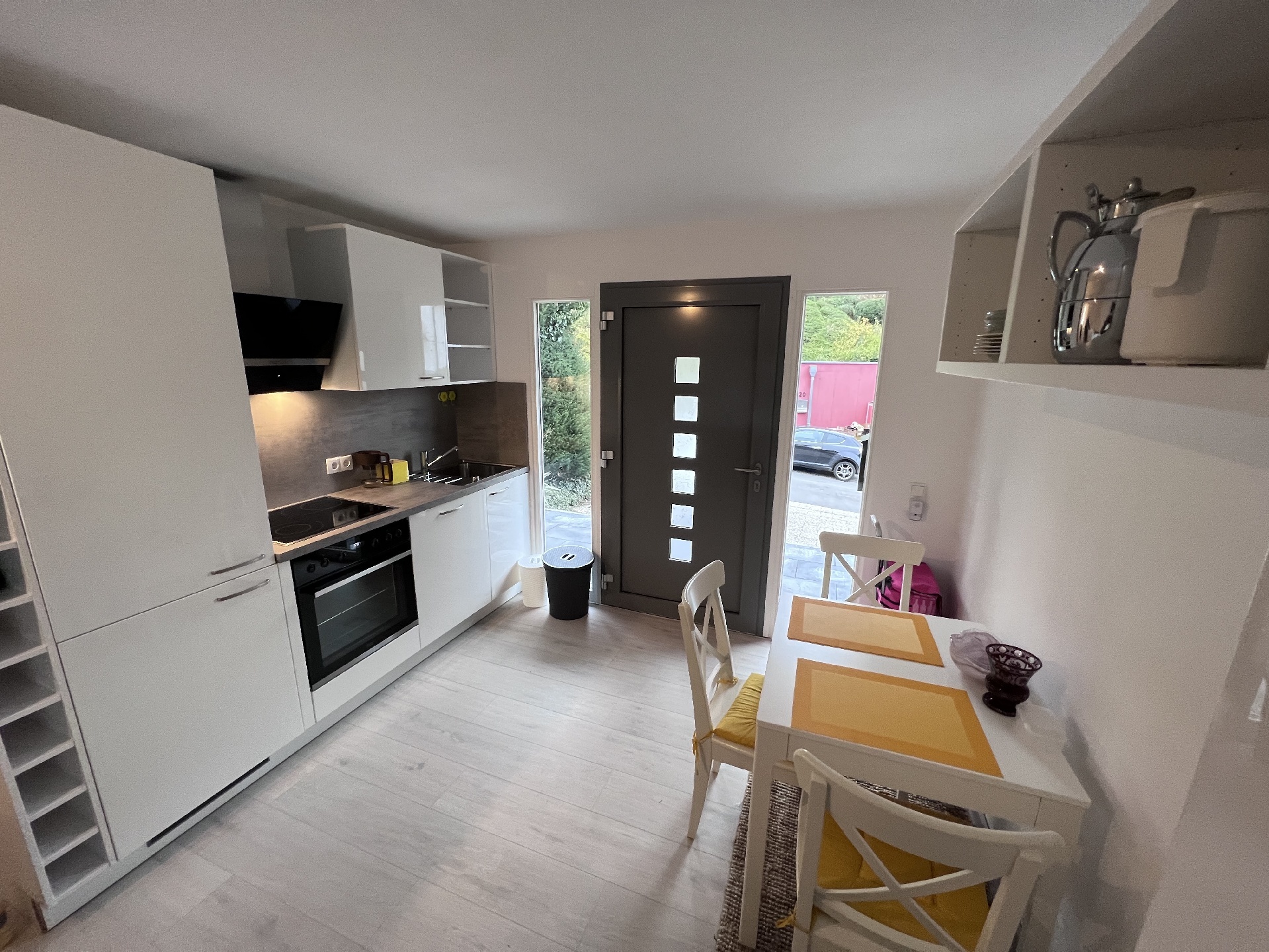 Das Badezimmer ist funktional ausgestattet und verfügt über ein Fenster, eine Dusche sowie ein Waschbecken. Die Küche bietet eine umfassende Ausstattung mit vier Cerankochfeldern, Backofen, Kühlschrank, Spülmaschine und Dunstabzugshaube und erfüllt damit alle Anforderungen des täglichen Bedarfs.