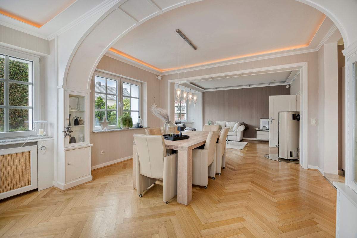 Im Zuge der umfassenden Modernisierung ab dem Jahr 2002 wurde die Immobilie technisch auf einen zeitgemäßen Stand gebracht. Sämtliche Wasser- und Abwasserleitungen, die Elektro- und Heiztechnik die Dachdämmung und der Innenausbau wurden erneuert, ebenso die komplette Haustechnik, sodass sich das Haus heute in einem gepflegten und funktional überzeugenden Zustand präsentiert. Die Verbindung aus historischer Substanz und erneuerter Technik schafft ein Wohnambiente, das gleichermaßen stilvoll wie zukunftssicher ist.