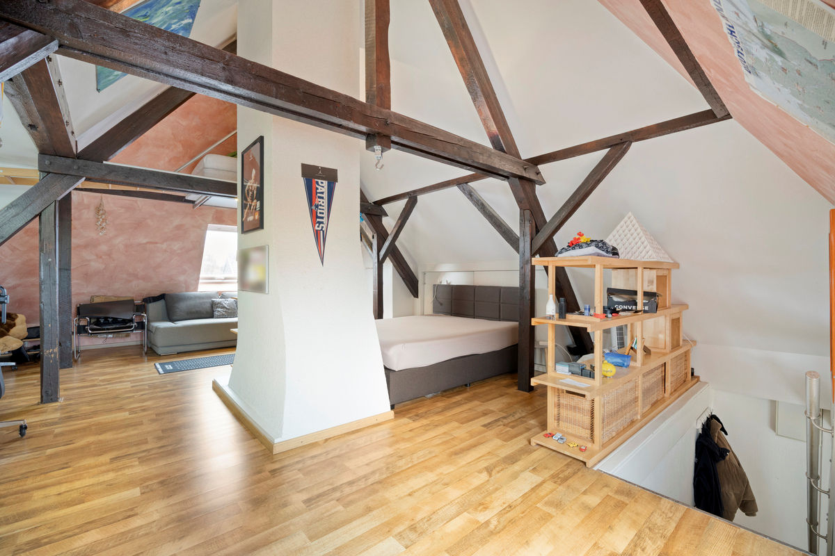 • Das im Jahr 1936 errichtete Wohnhaus präsentiert sich als charakterstarkes Anwesen mit unverwechselbarer archi-tektonischer Ausstrahlung im traditionellen „Kaffeemühlenstil“. Seine markante Form verleiht dem Haus eine besondere Präsenz und unterstreicht den zeitlosen Charme einer Bauweise, die heute nur noch selten in dieser Ausprägung zu finden ist.