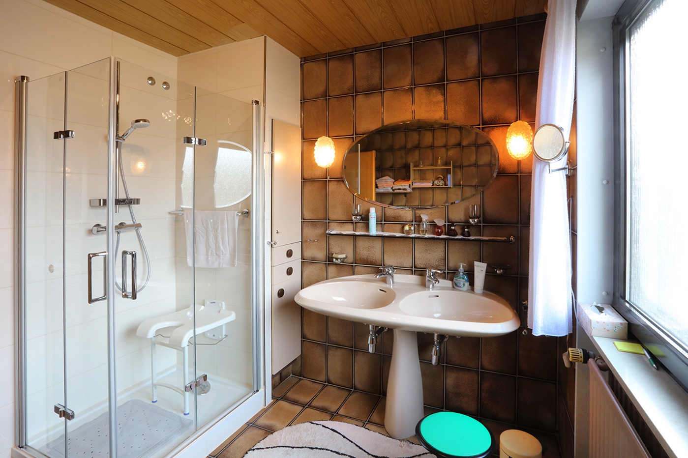 - Badausstattung: Dusche, Badewanne, Fenster