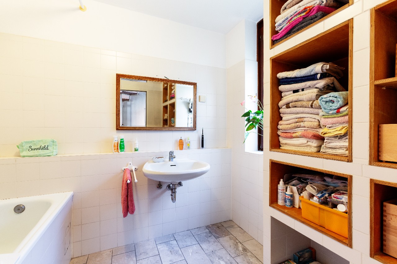 * Erdgeschoss: Wannenbad mit Fenster + separater WC-Bereich