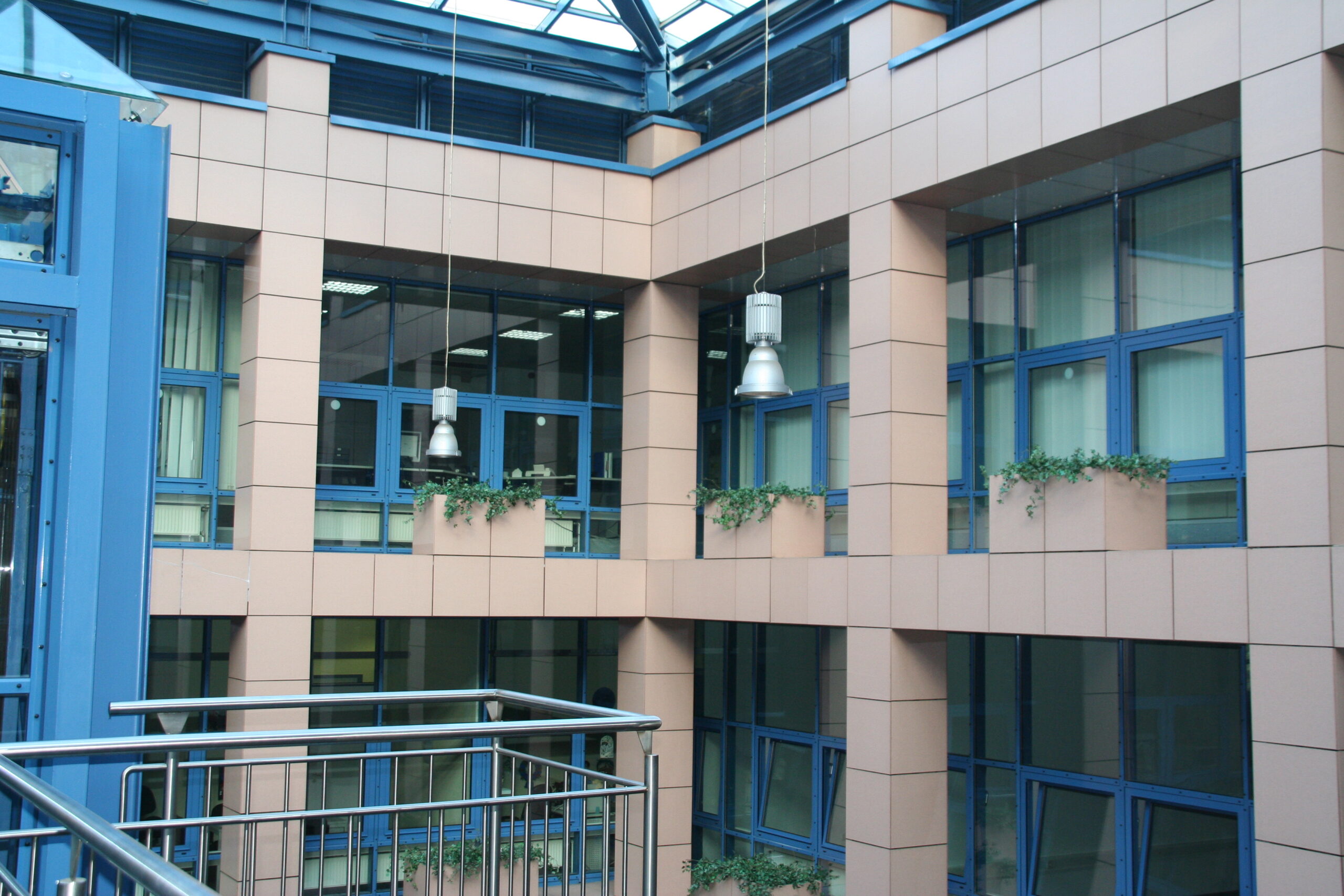 • Sehr moderne Bauweise (Stahl und Glas), Deckenbeleuchtung, EDV-Arbeitsbeleuchtung, EDV-Verkabelung, Kabelkanäle, Teeküche, getrennte Damen und Herren WCs, Bodenbelag nach Wunsch, Kunststofffenster, Sonnenschutz, Personenaufzug, Fensterbankkabelkanal, Pförtner