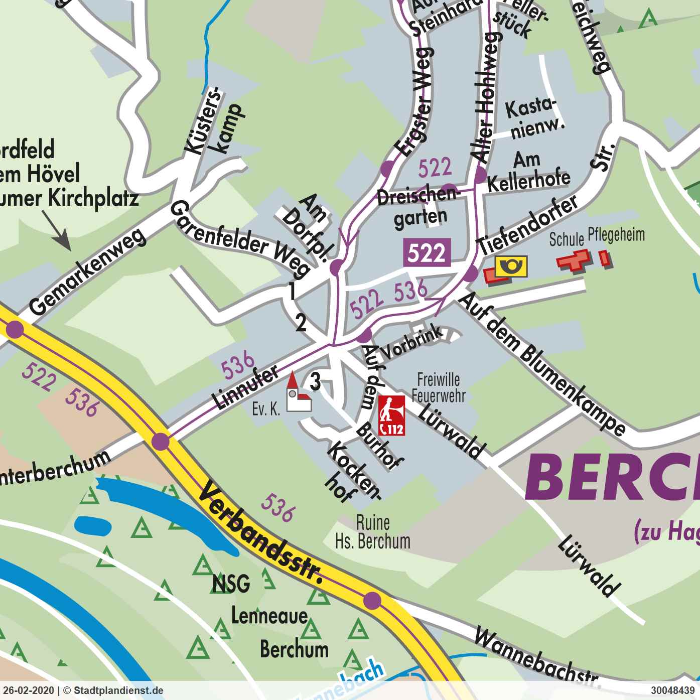 • Berchum ist ein beliebter Stadtteil im Nordosten von Hagen. Mit seinen derzeit ca. 1.600 Einwohnern besitzt der idyllische Stadtteil einen dörflichen Charakter. Die Wälder rund um Berchum laden zu herrlichen Spaziergängen. ein. Ein Kindergarten und eine Grundschule sind mit kurzen Fußwegen erreichbar. Weiterführende Schulen sind mittels Busverbindung in Hagen und Hohenlimburg unproblematisch erreichbar. Berchum ist insgesamt verkehrsgünstig gelegen. Sie gelangen schnell auf die Autobahnen A1 und A46. Das wachsende Einkaufsgebiet im Stadtteil Hohenlimburg-Elsey oder Hagen-Boele ist ideal für Besorgungen des täglichen Bedarfs.