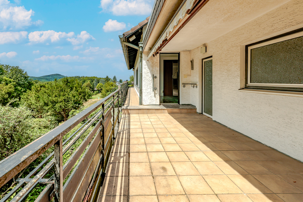 Zugang zu Balkon mit Blick ins Siebengebirge sowie zur großen Dachterrasse.