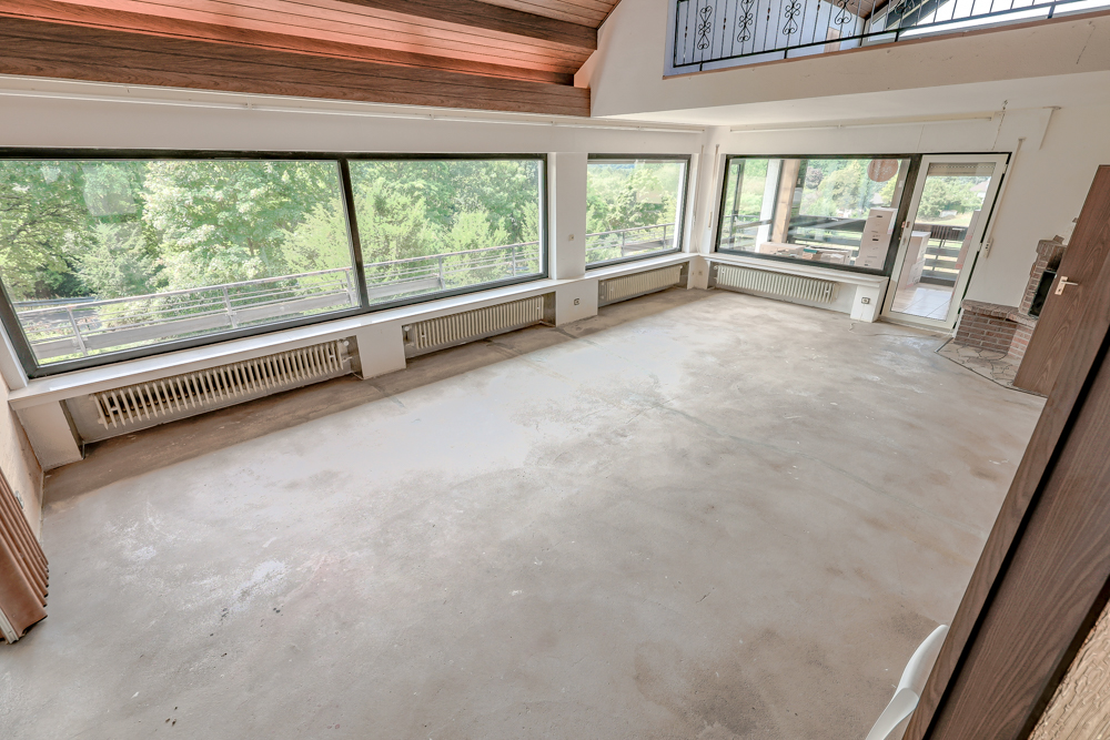 Sehr großer Wohnbereich mit Galerie zum Dachgeschoss und imposantem Eckkamin,