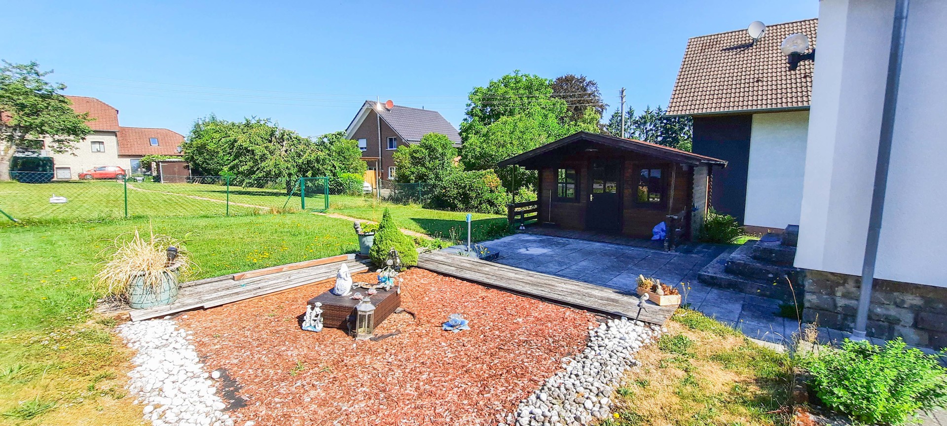 Dieses Objekt verwirklicht den Traum von einem gemütlichen Eigenheim. Die Immobilie wurde ca. 1949 in Massivbauweise auf einem ca. 1.078 m² großen Grundstück erbaut. Die Räumlichkeiten des Einfamilienhauses bieten eine gute Aufteilung der ca. 80 m² Wohnfläche im Erd-/ und Dachgeschoss. Das Erdgeschoss besteht aus einem Bad und einem lichtdurchfluteten Wohn-/ Essbereich mit einer kleinen Küche. In der Oberen Etage stehen Ihnen 2 Schlafzimmer zur Verfügung. Im Kellergeschoss befinden sich zwei Kellerräume und ein Heizungsraum. Auf der gemütlichen Terrasse, welche Sie im Erdgeschoss vom Esszimmer aus erreichen, können Sie im Sommer entspannte Grillabende verbringen, sowie die Gartenhütte bei schlechterem Wetter für Feierlichkeiten nutzen. Für Ihre PKW bestehen Parkmöglichkeiten in der großzügigen Einfahrt.