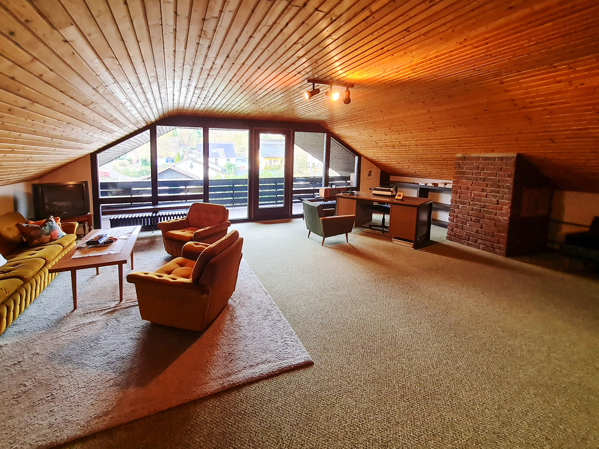 • Dieses top-gepflegte Architektenhaus (ELW möglich) wurde ca. 1982 in solider, massiver Bauweise errichtet. Es verfügt über eine Wohnfläche im Erdgeschoss und Dachgeschoss von ca. 141 m² zzgl. 193 m² Nutzfläche inkl. der Räume im Untergeschoss.