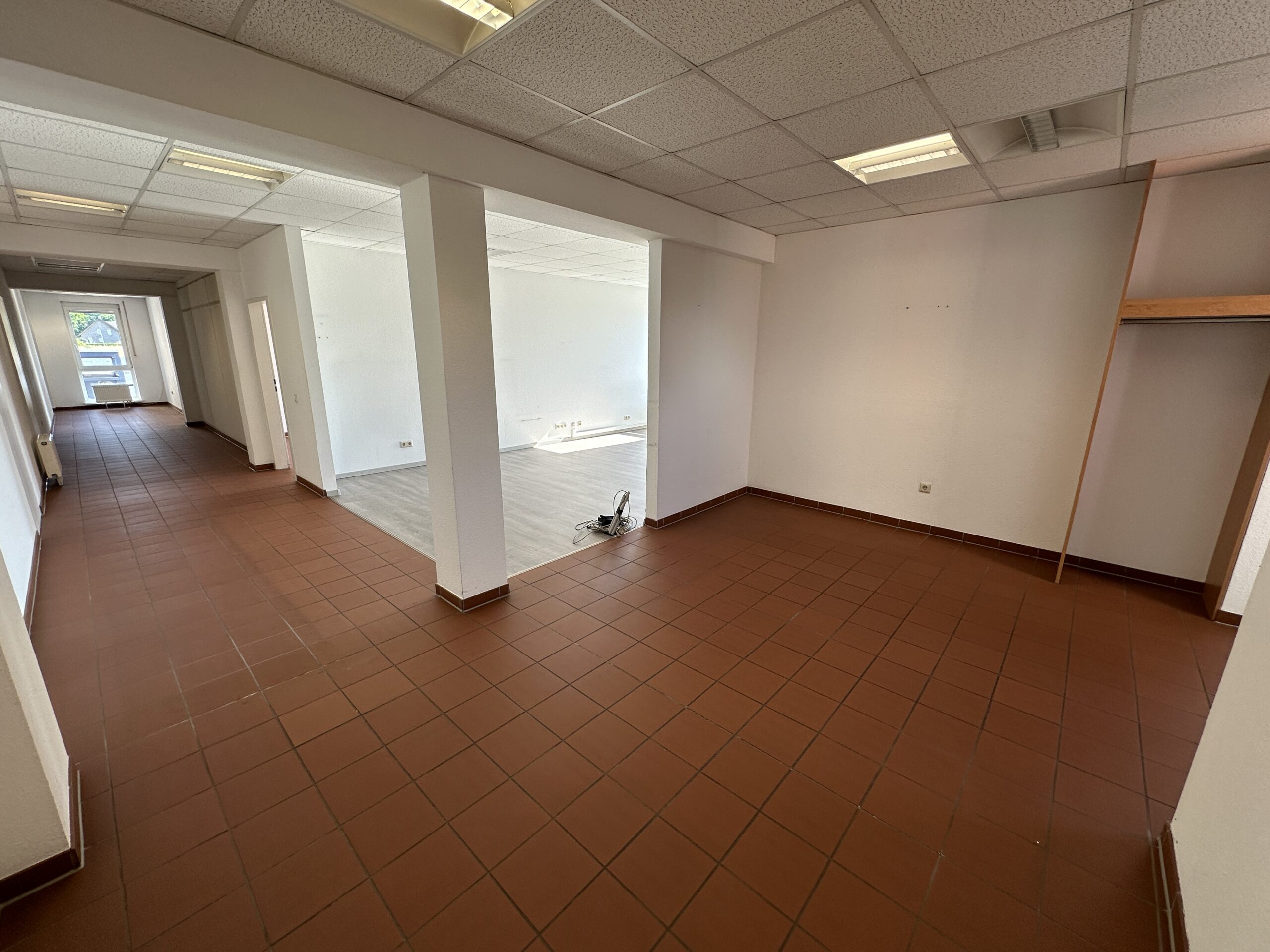 Das 2.OG ist mittels Treppe oder Fahrstuhl zu erreichen: Vom Empfang inkl. einem offenem Bürobereich gelangt man zu den derzeit 5 separaten Büroräumen, ein direkt zugängliches Lager von 47 m² im Zwischengeschoß sowie Küche und 2 WC-Anlagen.