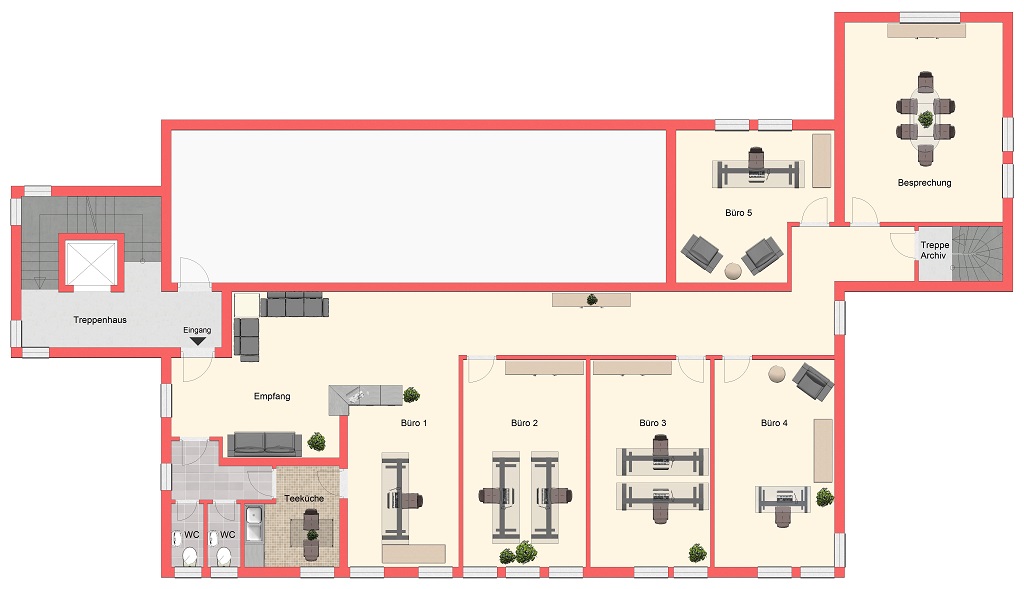 3 Parkplätze gehören zum Angebot – öffentlich zugängliche für Mandanten/Kunden stehen ausreichend zur Verfügung. Ein Glasfaseranschluß ist beantragt.