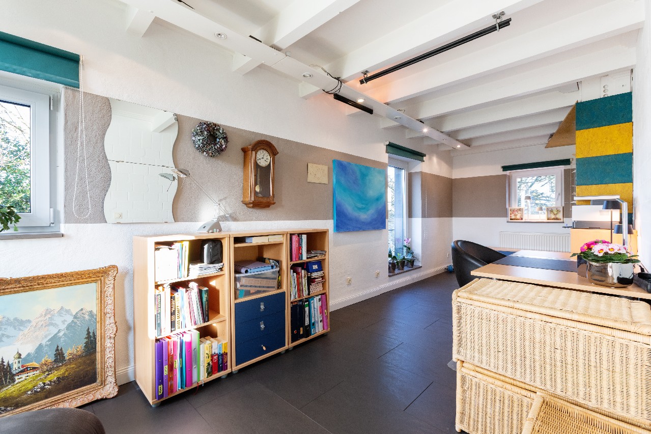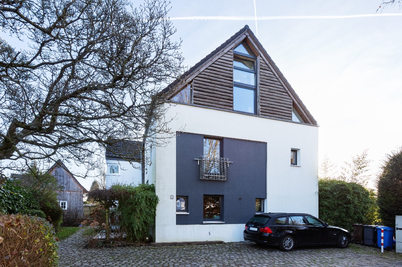 Im Obergeschoss sowie im Dachgeschoss stehen weitere gut geschnittene Räume zur Verfügung, die je nach Bedarf als Schlaf-, Kinder-, Gäste- oder Arbeitszimmer genutzt werden können. Komfortabel ist die Ausstattung mit zwei Bädern, die jeweils sowohl über Dusche als auch Badewanne verfügen – praktisch für Familien und zugleich angenehm im Alltag. Ein architektonisches Highlight ist die offen gestaltete Empore oberhalb des Dachgeschosses. Sie eignet sich hervorragend als Homeoffice, Lese- oder Kreativbereich und schafft einen zusätzlichen, offenen Rückzugsort innerhalb des Hauses. Die Empore mit einer Grundfläche von rd. 18 m² ist in der angegebenen Wohnfläche nicht enthalten.