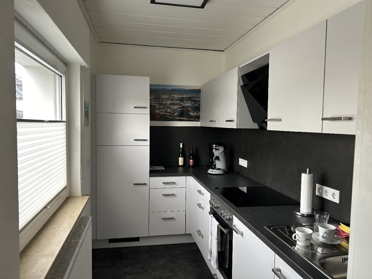 Erdgeschoss: 5 Zimmer, Küche, Diele, WC, Balkon. Obergeschoss: 3 Zimmer, Küche, Diele, Bad/WC, Abstellraum und Balkon. Dachgeschoss: 2 Zimmer. Garage. Keller.