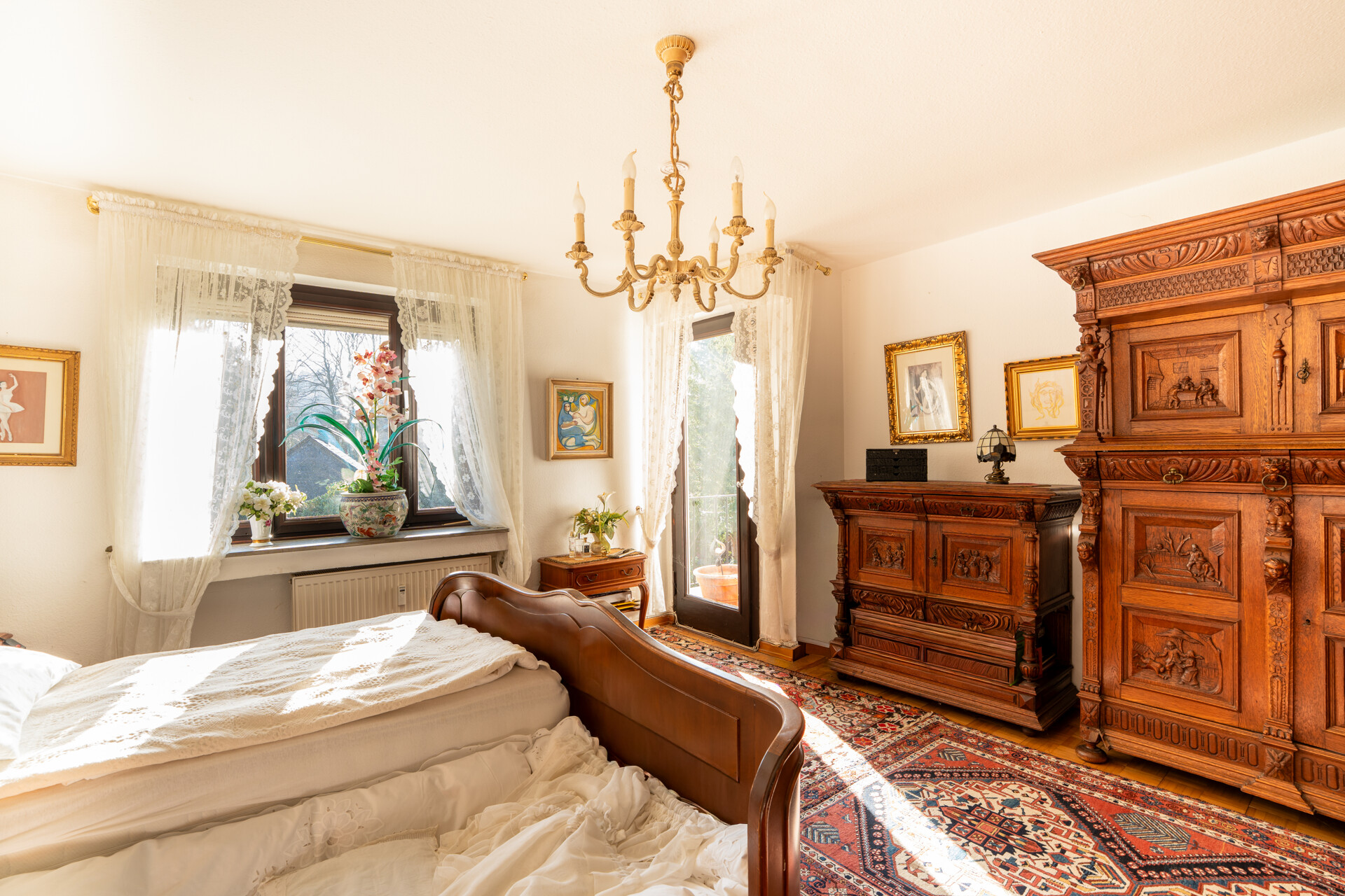 Das Herzstück der Wohnung bildet der Wohn- und Essbereich, der durch große Fensterflächen lichtdurchflutet ist. Von hier aus gelangt man auf den Balkon, der ebenso vom Schlafzimmer aus erreichbar ist und einen herrlichen Blick in den Garten sowie in den angrenzenden Wald eröffnet. Das ruhig gelegene Schlafzimmer bietet viel Platz für individuelle Einrichtungsideen und wird durch eine direkt angrenzende Ankleide ideal ergänzt. Alternativ könnte die Ankleide auch als Kinder oder Arbeitszimmer genutzt werden. Erdgeschoss und Obergeschoss sind identisch geschnitten, sodass jede Wohneinheit den gleichen Wohnkomfort bietet. Die Fenster des Obergeschosses wurden vor einigen Jahren erneuert. Außerdem ist das Obergeschoss aktuell vermietet.