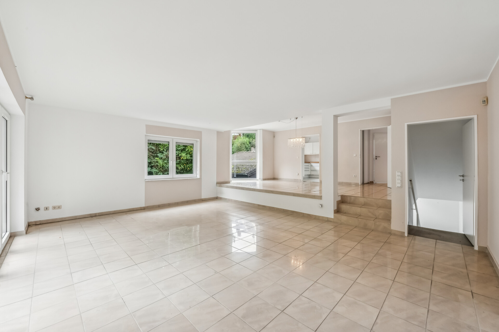 Helle Fliesen runden das Gesamtbild im Erdgeschoss ab.