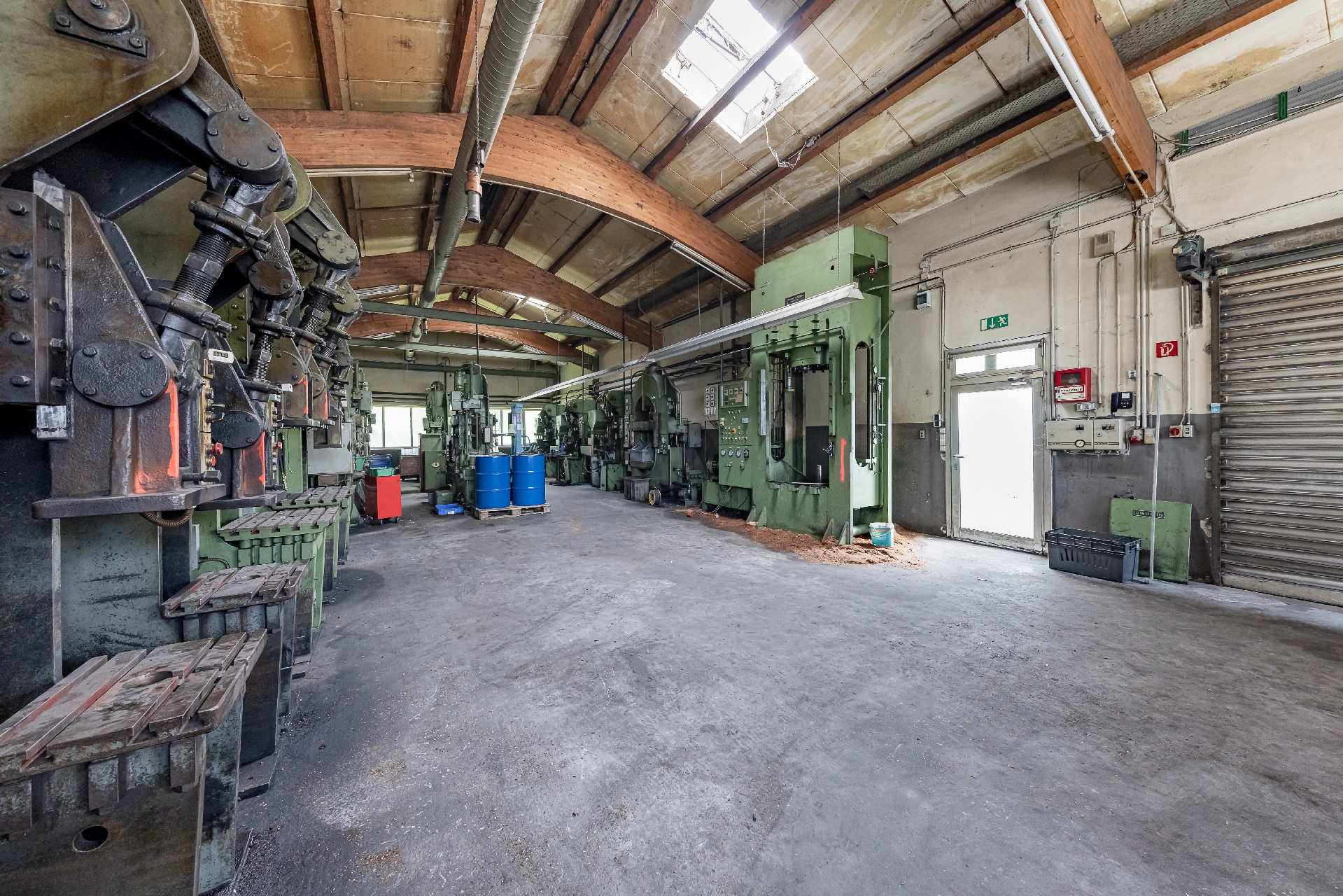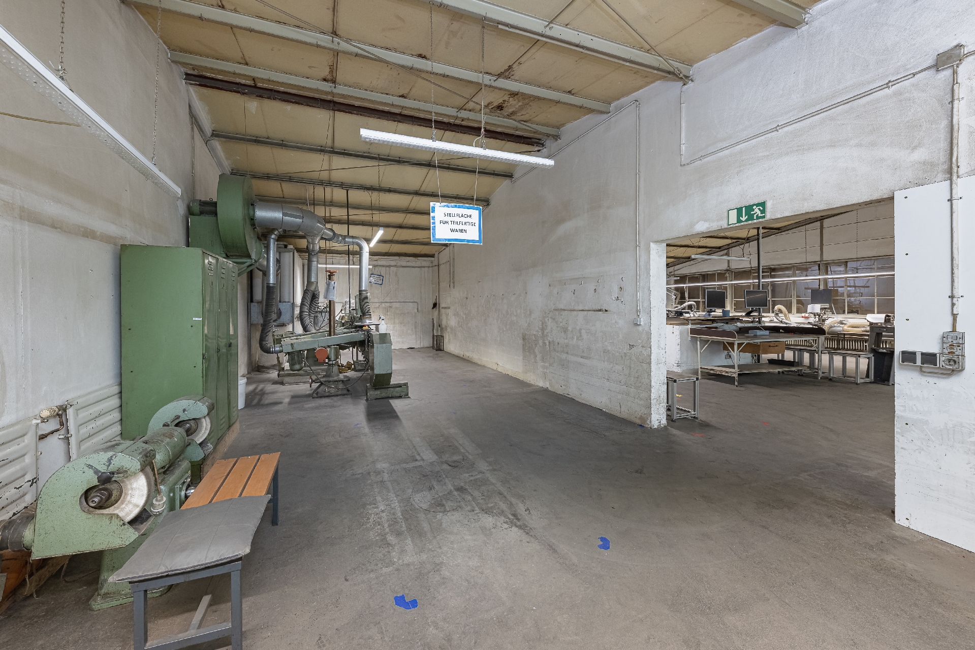 Die Produktionshallen sind ebenerdig über Roll- und Flügeltore zugänglich und bieten dank robuster Bauweise hohe Traglastreserven ideal für Maschinenparks, Flurfördertechnik oder schweres Lagergut. Die Gebäudeabschnitte sind intern miteinander verbunden und ermöglichen sowohl eine durchgehende Nutzung als auch eine flexible Teilung für unterschiedliche Betriebsbereiche oder eine Teilvermietung.